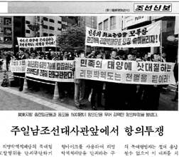 周知のように総連は、北韓を「南北すべての人民の総意によって建設された唯一正当な主権国家、唯一の祖国」と定め、「同胞を『共和国』(北韓)のまわりに総集結させる」ことを使命としている。当然のこととして、北韓の独裁世襲体制と「金日成王朝体制の南地域への拡延統一」政策を無条件支持し、その実現のための闘いの先頭に立つことを表明し活動している。=別掲写真参照