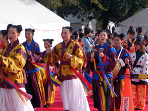式典で李明博大統領と野田佳彦首相の祝辞が読み上げられた。続いて、耽羅・加耶、百済、高句麗、新羅、朝鮮王朝の各時代衣装を身につけた楽隊を先頭に、総勢1000人が次々に巡行を繰り広げた。