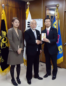 兪在根民団中央本部常任顧問は15日、呉公太団長に賛助金1000万円を伝達した。