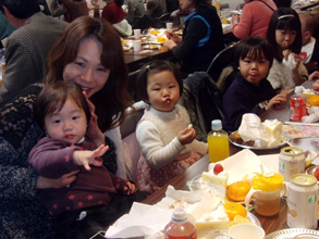 婦人会桑名支部(尹栄子会長)が用意したケーキやチキンをほおばり、青年会からお菓子をもらった。同支部の韓国語初・中級講座に通っているメンバーは韓国語の歌で会場に彩りを添えた。