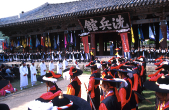<閑山大捷祭り>壬辰倭乱で海戦を勝利に導いた李舜臣将軍(1545〜98年)の護国精神をたたえる祭り。展示と海洋スポーツ体験、亀甲船(李舜臣が作った世界最初の鉄甲船)作り、弓作りなどが体験できる。8月/慶尚南道統営市李舜臣公園一帯。