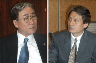 [ 左・黄迎満民団中央副団長。右・李鍾元立教大学教授 ]