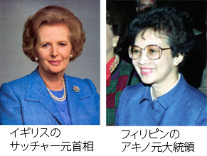 これまでも「鉄の女」と呼ばれたイギリスのマーガレット・サッチャー首相、「コリー」の愛称で国民に愛されたフィリピンのコラソン・アキノ大統領などや、チリのミシェル・バチェレ大統領のように、任期を終えた後、10年9月に国連の新組織「UNウィメン」の初代事務局長に就任した人物もおり、いずれも高い指導力を備えた女性リーダーが活躍してきたのだ。