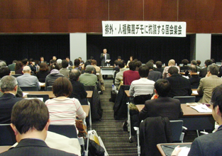 「韓国人を殺せ」などと連呼し、在日同胞に「表現の自由」の一線を超えた罵詈雑言を浴びせながら異常なデモを繰り返している「在特会」(在日特権を許さない市民の会)に対する抗議集会が14日、参議院議員会館講堂で開かれた(写真)。民主党の有田芳生氏をはじめとする国会議員11人が、「もはや容認できない」「現状を変えるため歯止めが必要」と呼びかけ人になった。この問題で国会議員が立ち上がったのは初めて。