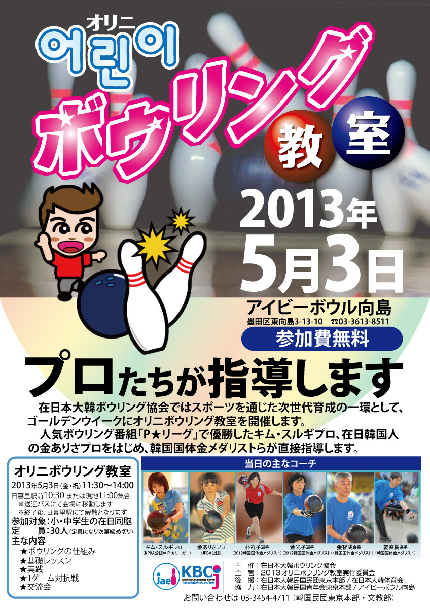 在日本大韓ボウリング協会(張智成会長)はGW期間中の5月3日、オリニボウリング教室を東京都内で開催する。スポーツを通じた次世代育成の一環。