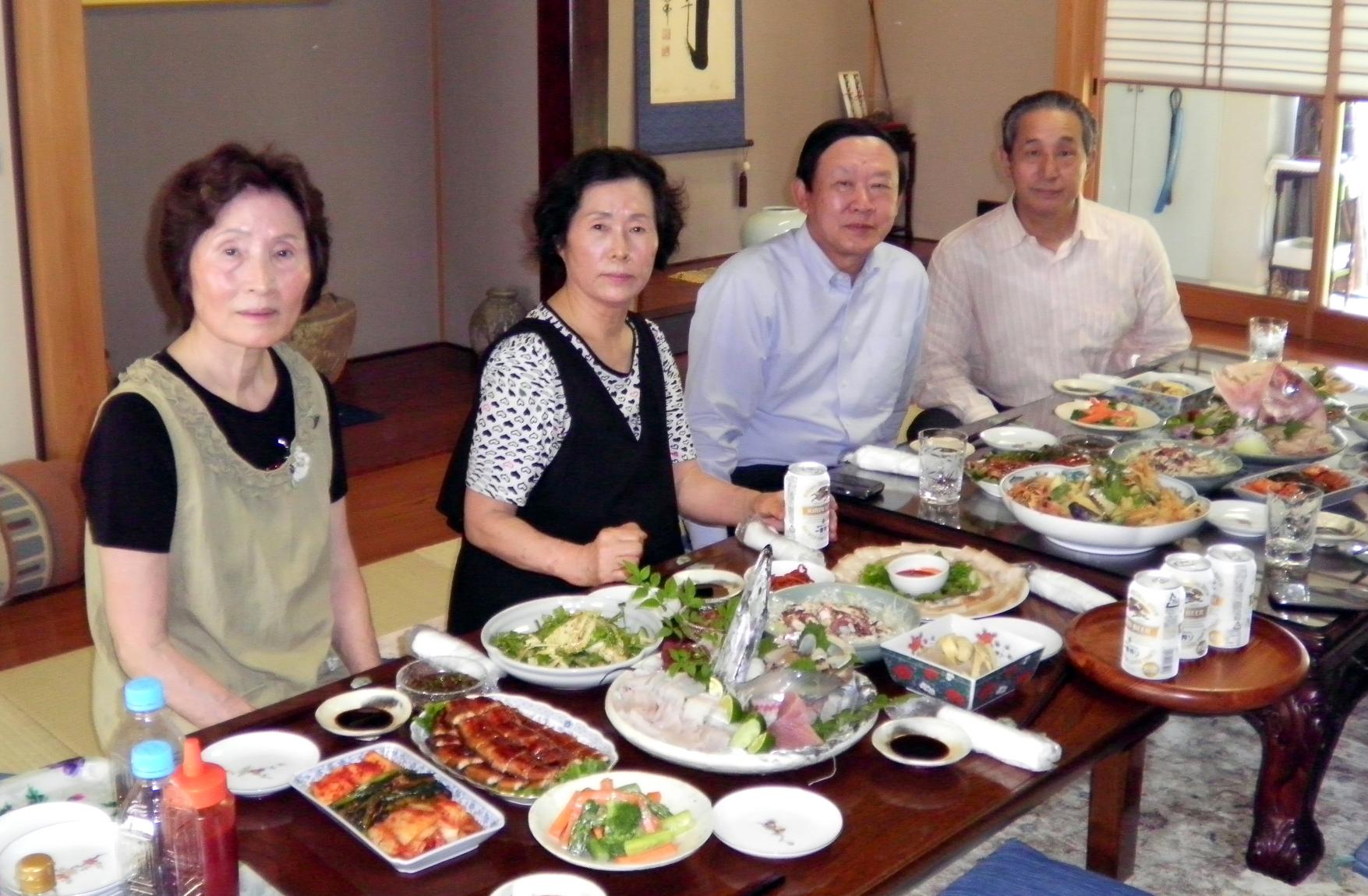 孫さんは14日、李さんを松山市内の自宅に招き、心尽くしの手料理で歓待。先祖の話をしながら、親族としての絆を確認しあった。大阪から孫さんの実弟夫妻、新居浜からは妹が駆けつけた。