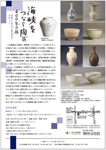 この度、韓国文化院では今年初めての企画展として「海峡をつなぐ陶匠400年の旅 −李参平と沈当吉(沈壽官家初代)をめぐって−」展を開催する運びとなりました。