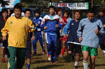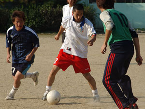 [ 相手も決まり、決戦を前に調整をする在日同胞サッカーチーム ]