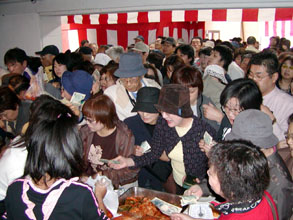 [ 開場と同時に市民が殺到したキムチ売り場 ]