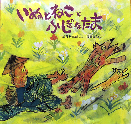 実は日本にも、これとそっくりの『いぬとねことふしぎなたま』というむかし話があるのですよ。助けるのが白ヘビ、金の粒をだすたまというところが少しちがいます。イヌとネコが川を渡り、ネズミを脅してたまを取り返すのも、ネコがしくじって川にたまを落とすのも一緒です。けれども、韓国のお話とまったくちがうのは最後の最後。イネとネコが仲良く一緒にたまを届けるところです。