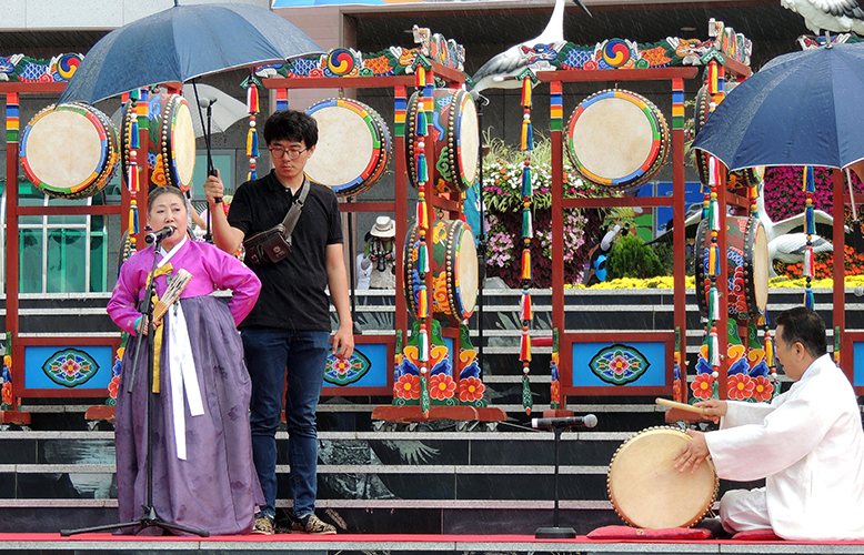 パンソリは韓国の伝統的な民俗芸能で、03年にユネスコの無形文化遺産に登録されました。もちろん、わたしもパンソリのことは知っていて、テレビや映画で見たことがありました。でも、目の前で演じられるパンソリを見たのは生まれてはじめてでしたので、とても興奮しました。