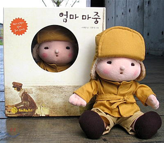 キム・ドンソンはとても多才で、絵本のほかにも広告、ポスター、アニメ、何でもこなしますが、彼の名を多くの国民が知ることになったのが、この『かあさん…』なのです。写真のような、主人公のキャラクター人形が販売されるほどに、多くの支持を得ました。