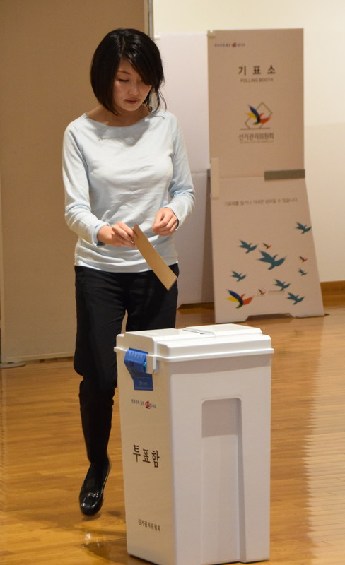 駐日韓国大使館の投票所、東京新宿区にある韓国文化院には投票開始前から数十人がかけつけた。柳興洙駐日大使も午前10時半に夫人とともに投票を終えた。