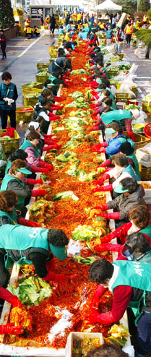 冷え込みもぐっと厳しくなり、本格的なキムジャン(キムチを大量に漬けるシーズン)を迎えて、低所得層の住民たちのための「愛のキムチ漬け」行事に参加した多くのボランティアたちが、越冬用のキムチを漬け込んでいる。国内最大の規模で行われたこの行事には、200余人のボランティアが参加して、70mを超えるテーブルの上で、3万1000株のキムチを漬け込んだ。この愛のこもったキムチは、恵まれない家庭に配られる。