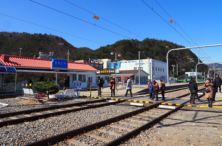 2017年5月現在、嶺東線の終着駅・江陵では平昌オリンピックに向けて高速鉄道の建設工事が行われており、正東津が暫定の終着駅だ。この年末にはソウル〜江陵間は2時間弱で結ばれ、ジョイフルトレイン「海列車」も接続するなど、正東津駅は今よりもずっと訪れやすくなる。