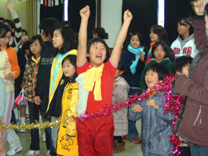 金会長は「ヒョンニム、オッパやオンニ、ヌナたちと一緒に今日一日を楽しんでください」とあいさつ。オリニたちは待ってましたとばかりに、ビンゴゲームや○×ゲームなどで大はしゃぎ。