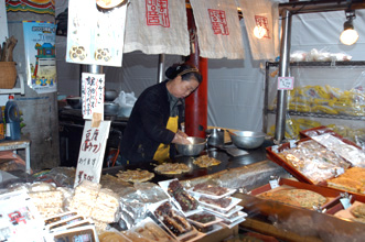 [ 店頭で焼くチヂミも人気商品の一つだ ]