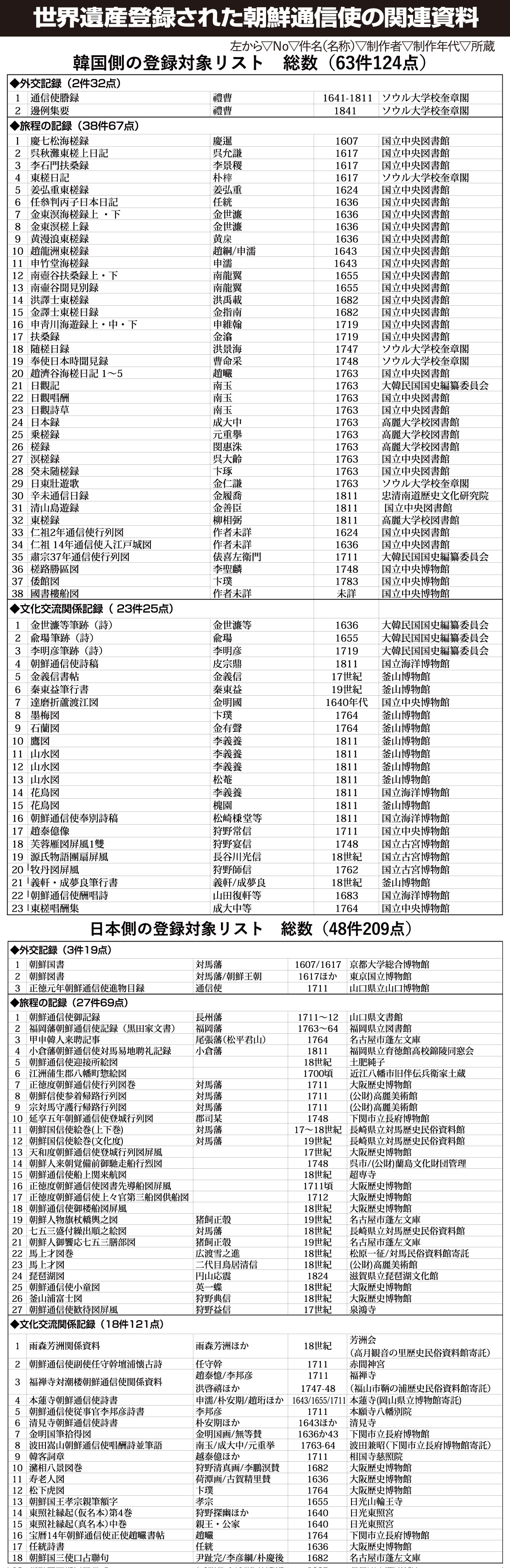 世界遺産登録された朝鮮通信使の関連資料一覧