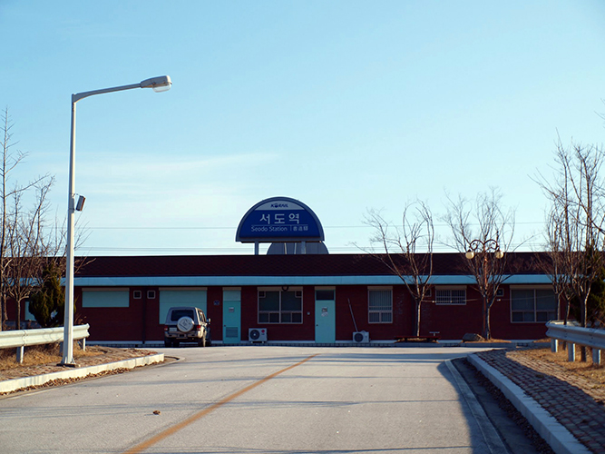 全羅線、書道(ソド)駅。構内には、線路脇に旧式の信号切替レバーが並んでいる。だが、列車が来る気配は感じられない。