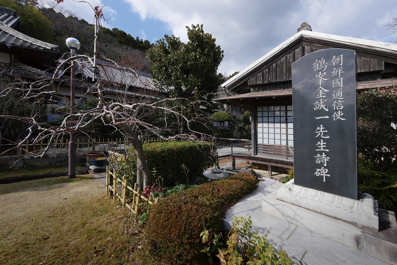 宿坊西山寺で運転手さんと別れた。このお寺は朝鮮との外交機関「以酊庵」(いていあん)が置かれていたところで、庭には朝鮮通信使(1591)として日本に渡った金誠一の詩碑があった。また柳川一件(いっけん)といわれる、対馬藩主・宗義成と家老・柳川調興が日本と朝鮮の間で交わされた国書の偽造をして対立した事件もここで行われた。明治時代になり朝鮮との外交権が途絶え、この施設は廃止され対馬藩から外務省に移ってしまった。