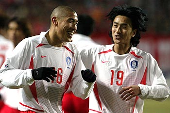 後半に入っても韓国ペースでゲームが進み、6分に、今度は朴智星のコーナーキックをゴール右側から詰め寄った秉局が頭で決め追加点を決めた。