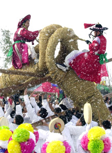旧暦正月の15日(今年は2月5日)は韓国では様々な行事が行われる。光州市南区石洞にあるコサウム伝授館では豊年と安寧を祈願するコサウムノリ祝祭が行われた。プンムル(風物)のリズミカルな調べがお祭りの雰囲気を盛り上げる中、西と東から男性と女性を象徴する綱が衝突し、今年は女性を象徴する西側の勝利となった。水を象徴する女性側が勝利した年は豊作になるといわれている。600余年の伝統を誇るコサウムノリは国指定の無形文化財33号で、88年のソウル五輪で公式行事として披露されたこともある。