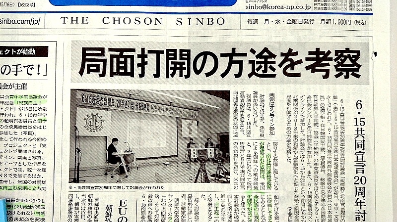 [ 東京での「6・15共同宣言発表20周年記念共同討論会」をハングル面および日本語面トップで報道した6月26日付「朝鮮新報」 ]