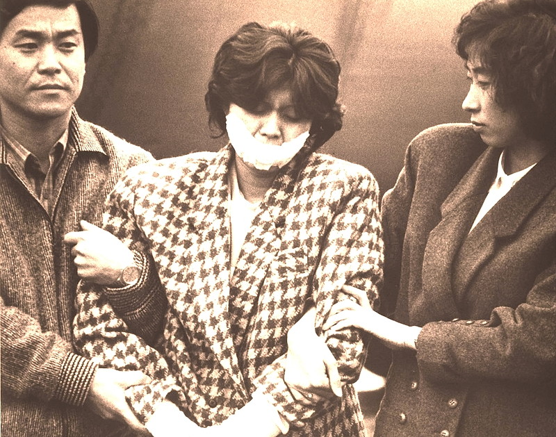 [ 大韓航空機爆破事件で逮捕され護送される金賢姫 ]