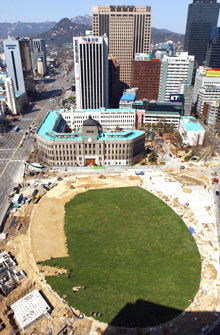 2002年ワールドカップ韓日大会時、真っ赤なユニホーム姿で市庁前広場を埋めたレッドデビルスの熱狂的な応援は記憶に鮮明に刻まれている。市庁前は3800坪の広大な楕円形の芝生広場として生まれ変わろうとしている。広場は、一般市民の憩いの場やイベントなどに利用される。5月には芝生に寝転がって本を読んだりお弁当を食べたりする市民の姿が見られそうだ。