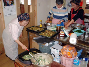 現在、「つばさの家」の指導員として働く能島裕子さんは、元々は養護学校の教師だった。障害者らの自立をどう地域で確立するか10数年にわたって模索し、ようやく98年に作業所を立ち上げたが、その間の苦労を知っている友人、婦人会豊田支部の朱松花さん(総務部長)が思い立ったのが昼食の準備。昨年2月から一人で始めた。