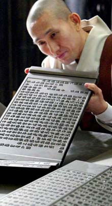 世界文化遺産で国宝32号でもある海印寺の八萬大蔵経が半永久的に保存できる銅板に生まれ変わる。慶尚南道陜川郡にある海印寺大寂光殿(華厳殿)で17日に行われた奉正式を起点に、銅板八萬大蔵経造成事業が本格的にスタートした。200億ウォンをかけて、木版本には入っていない韓国の歴代古僧の語録を追加して9万余枚で完成する計画だ。燐青銅の版はサイズは変わりないが、木版より0.7㎏ほど重い。