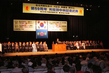 民団中央本部の金宰淑団長は15日、東京・日比谷公会堂で開催された「第59周年光復節慶祝中央式典」の慶祝辞を通じ、朝鮮総連中央本部に対して、来年の光復節60周年式典の共同開催を正式に提議した。祖国解放の喜びを分かち合った在日同胞の原点に帰るとともに、6・15南北頂上会談5周年に当たって両組織の和合を図り、南北共同宣言の精神を在日同胞社会でも具現しようというもの。光復節式典の共同開催提議は初めて。