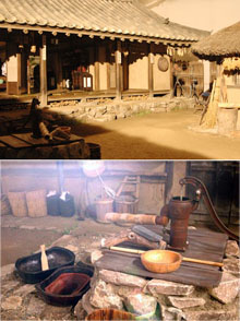[ 韓国の旧家に迷い込んだかのようなロケセット。石や井戸の細部にまでこだわりが見られる。 ]