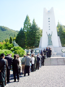 「望郷の丘」には、強制連行などで苦難を強いられた在日同胞や在日学徒義勇軍同志ら1万1千560体が安置されている。