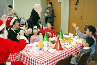 【埼玉】民団埼玉県本部(鄭平普団長)が5日、04年オリニクリスマスパーティーを開催し、オリニや父母、鄭団長をはじめとした民団幹部ら約60人が参加した。