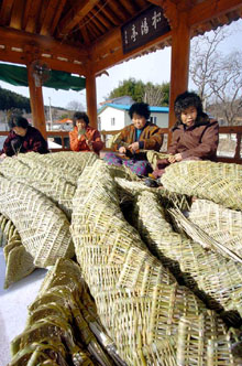旧正月が近づくと、ボクジョリ(福笊籬=福を呼ぶ網杓子)づくりに猫の手を借りたいほど忙しくなる。1月30日、全羅南道和順郡北面ボクジョリ村の住民たちが、共同作業場の村の会館でボクジョリを作っている。元旦の夜明けに売り歩くボクジョリは、韓国の伝統の民俗風習で、福を呼ぶいわれがある。20年前まではボクジョリを各家庭の室内に飾る習慣が一般的だったが、年々薄れて懐かしい風景になってしまった。