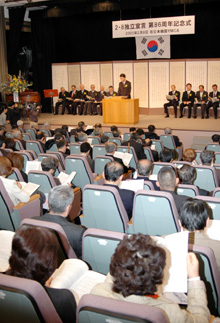 在日同胞のソプラノ歌手、鄭香淑さんの「2・8独立宣言の歌」で始まった式典には韓国から光復会、独立有功者協会の関係者が参加、往時をしのぶとともに当時の在東京留学生が果たしたその先駆的行動を改めてかみしめた。