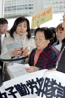 第2次大戦末期、女子勤労挺身隊員として名古屋の三菱重工業に動員された韓国人女性とその遺族らが2月25日、東京の三菱重工本社前で一日も早い謝罪と補償を要請した。