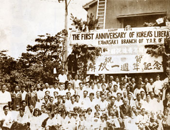 [ 解放1周年を祝う大会に集まった神奈川県下の同胞たち(1946年8月15日) ]
