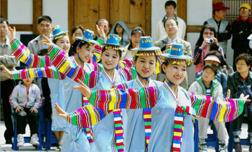 脱北者たちで構成された「白頭漢拏統一芸術団」の団員たちが15日、ソウル国立民俗博物館で開かれた舞台で「ペレンイ踊り」を披露している。最近北韓でも「ペレンイ踊り」のような伝統的な踊りと音楽を見直す作業が盛んになっているという。伝統文化を後世に残そうとする動きは、南も北も変わらないようだ。