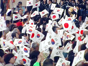 [ EXPOドームに太極旗と日の丸の小旗が波打った ]