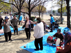 [ 故郷の民謡にあわせて踊る同胞のお年寄りたち