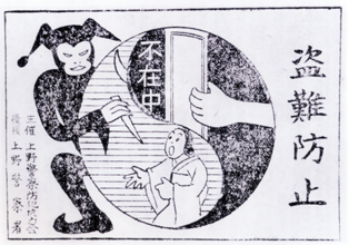 上野警察防犯協力会の主催する盗難防止月間用で、上野警察署後援とあることから、上野署管内のあちこちに貼られたとみられる。時は1946年10月、場所は上野だが、大阪、神戸、福岡などの朝鮮人多住地域にも同じようなものがあったと思う。