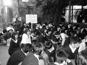 【長野】長野市松代町の戦争遺跡、象山地下壕が小学校から高校までの児童・生徒を中心に年間10万人の見学者でさながらラッシュの様相をみせている。児童・生徒は薄明かりの中、岩盤に残る削岩機の穴やトロッコの枕木跡に目をこらし、徴用され工事に携わった韓国人の怒りと悲しみの声に耳を傾けている。89年以来の総入場者数は昨年までに160万人を超えた。