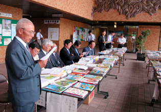 アピールに加わったのは民団長野県本部(呉公太団長)と総連長野県本部(李光相委員長)、および松代大本営朝鮮人犠牲者追悼碑を守る会(塩入隆会長)の3団体。各団体代表12人はこの日、松本合同庁舎ロビーに展示された中学歴史教科書見本本を手にとり、「つくる会」教科書との記述の違いを近現代史に絞って比較検討した。