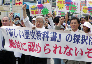【栃木】大田原市教育委員会が13日、「新しい歴史教科書をつくる会(以下「つくる会」)」が主導し、扶桑社が発行した歴史教科書を採択したことに対し、民団は同日、文教局長名で撤回を求める声明を発表、22日には現地で示威行動を展開するとともに、関係当局に撤回を直接申し入れた。「つくる会」とそれに癒着する教育委を糾弾する動きが全国で活発化している。教科書問題は天王山を迎えた。