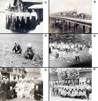 秋田県尾去澤町は鉱山町で多くの同胞がいた。47年ごろ、民族衣装で勢ぞろいした婦人たち