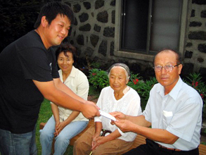 遺族は北済州郡旧左邑に住む。プロジェクトチームを代表してリーダーの鄭順一さん(38)が遺族で妻の金順児さん(85)と長男ソプ鎭さん(64)に基金を手渡した。遺族へ手渡された基金は02年当時の100万円と合わせ計136万円になった。