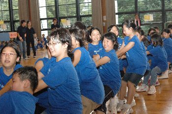 [ 大歓声の中、力いっぱいの綱引き ]