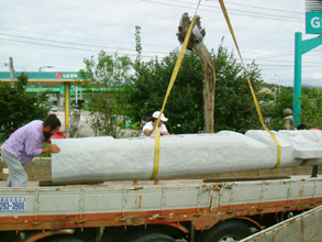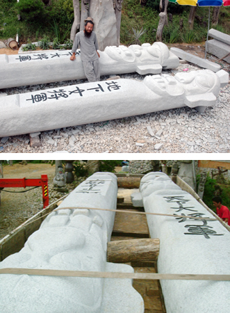 新しい長丞は韓国の専門家が制作。それぞれ、1本8㌧の花崗岩から加工されたもので、高さ5・5㍍、直径0・7㍍になる。そこには民団中央団長名で「韓日国交正常化40周年と韓日友情年を記念して建立 高麗神社に寄贈する」と刻印された。10月23日に同神社で開催される埼玉本部主催のマダンに合わせ、除幕式が行われる。
